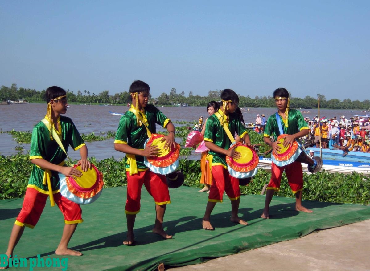 Múa trống Chhay dăm trong Lễ hội Oóc Om Bóc tại tỉnh An Giang. Ảnh: Mỹ Xuyên