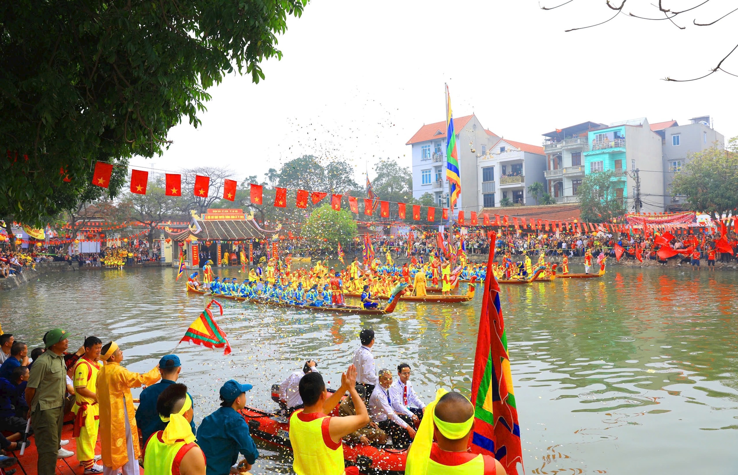 Hội bơi Đăm - một trong những lễ hội nổi tiếng nhất phường Tây Tựu. Ảnh: MT