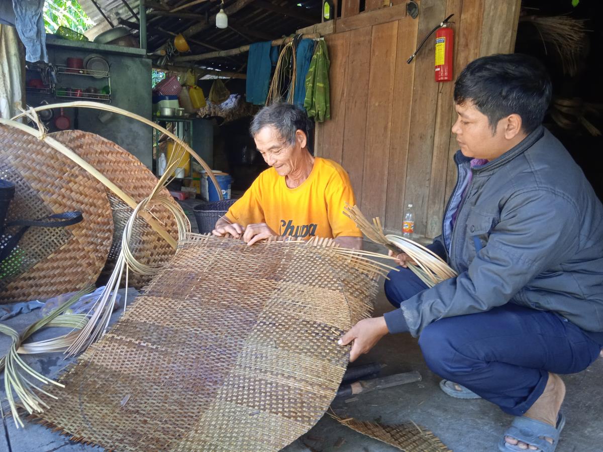 Ngồi cùng chúng tôi theo dõi ông Vấn đan chiếc nia sảy lúa, anh Tơ Ngôl Phúc, cán bộ Ban Văn hóa xã Đắc Tôi chia sẻ: Nói về nghề đan lát truyền thống của người Tà Riềng, mặc dù bác Zơ Râm Vấn bị tật từ nhỏ, nhưng bác là người "giữ lửa" nghề và truyền dạy kỹ năng đan lát cho lớp trẻ dân tộc Tà Riềng để nghề đan lát tiếp tục được bảo tồn và phát huy.