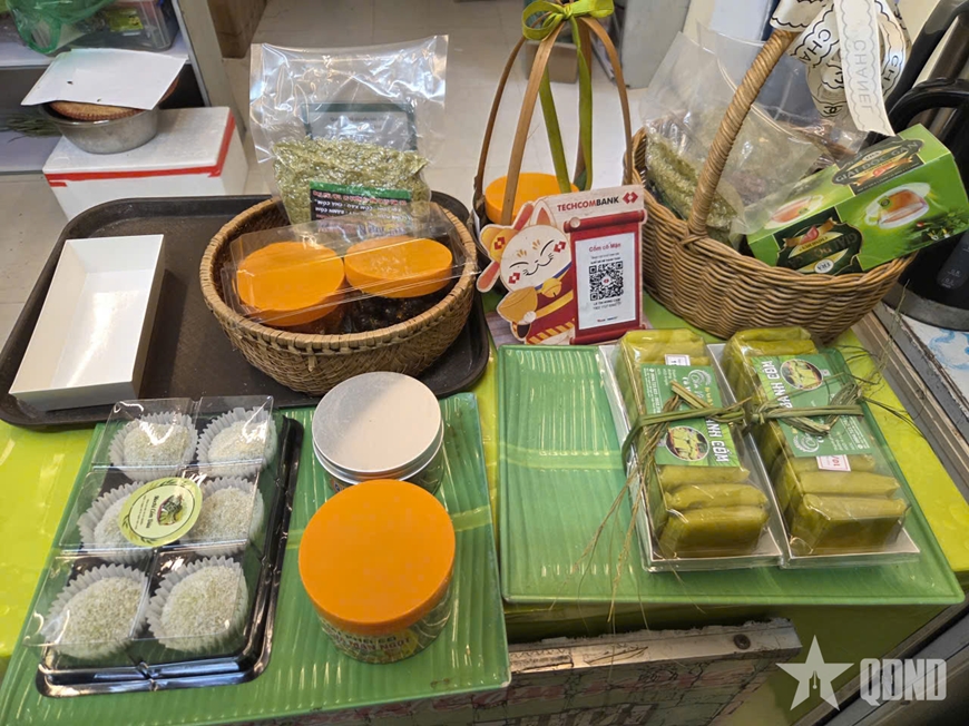 Không chỉ cốm tươi, các sản phẩm từ cốm như bánh cốm cũng trở thành lựa chọn hàng đầu trong dịp lễ này. Với lớp vỏ màu xanh dẻo mịn, nhân đậu xanh bùi ngọt, bánh cốm dễ bảo quản hơn, thuận tiện cho việc đóng gói biếu tặng. Đây cũng là lý do khiến sản phẩm này liên tục “cháy hàng”.