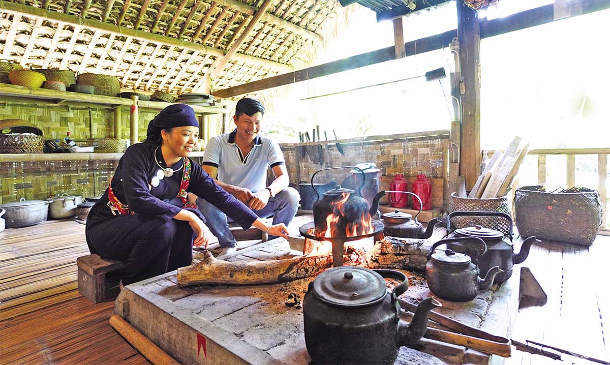 Du khách trải nghiệm và khám phá ẩm thực tại bản làng Thái Hải, Thái Nguyên. Ảnh: Hồ Hạ