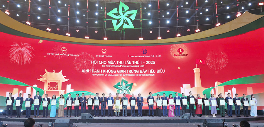 Ban Tổ chức vinh danh 30 tổ chức, doanh nghiệp trong và ngoài nước giải thưởng “Không gian trưng bày tiêu biểu” tại Hội chợ mùa Thu lần thứ I - năm 2025 (Ảnh: TITC)