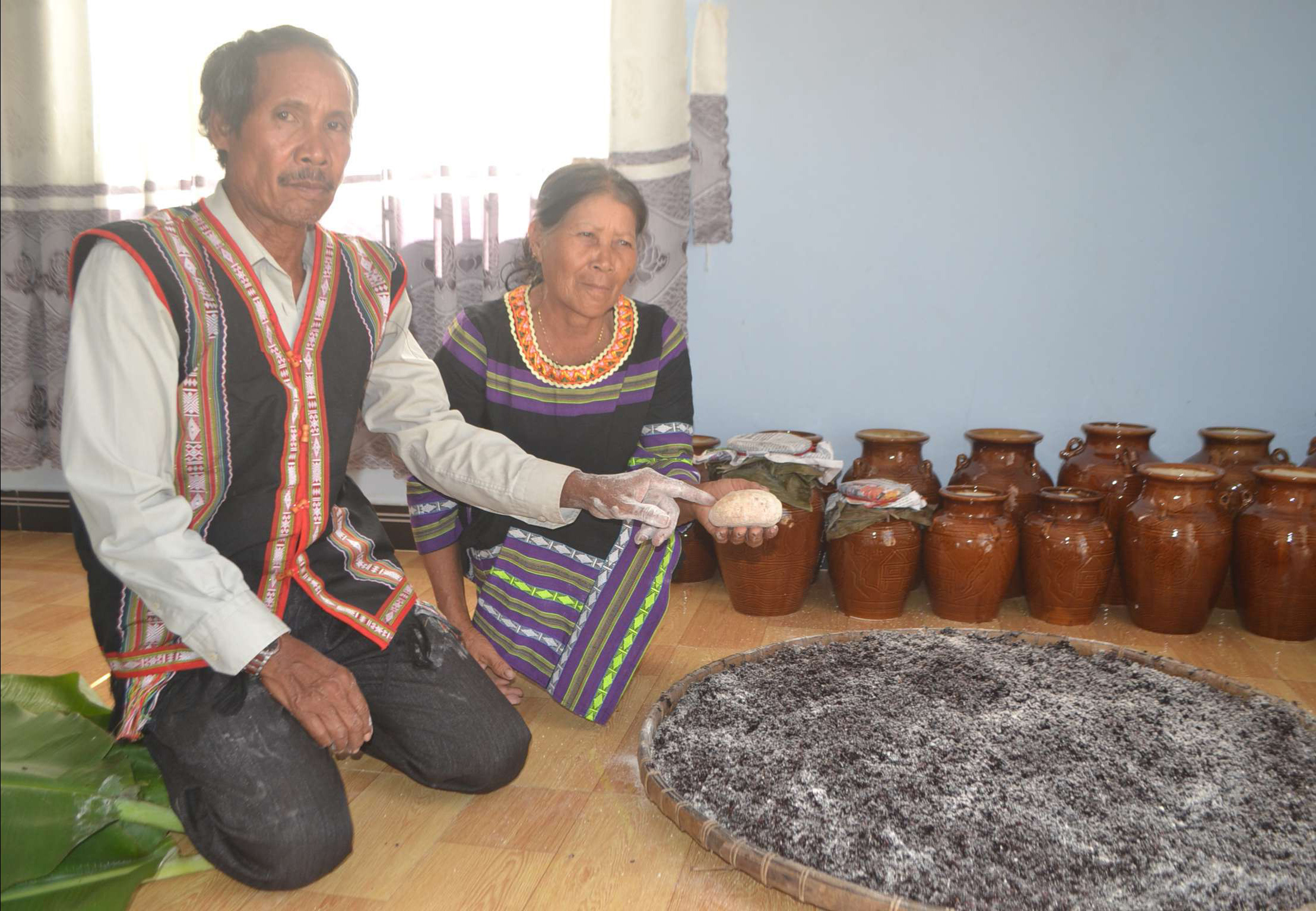 “Ví như trời nóng, phơi cơm nếp ra nong phải để cho cơm nguội hẳn rồi mới trộn đều với bột men; trời mát lạnh lại khác, cơm nếp phơi ra nong không nên để cơm nguội mà cơm còn hơi ấm là trộn đều với bột men...”- Nai Buih lý giải.