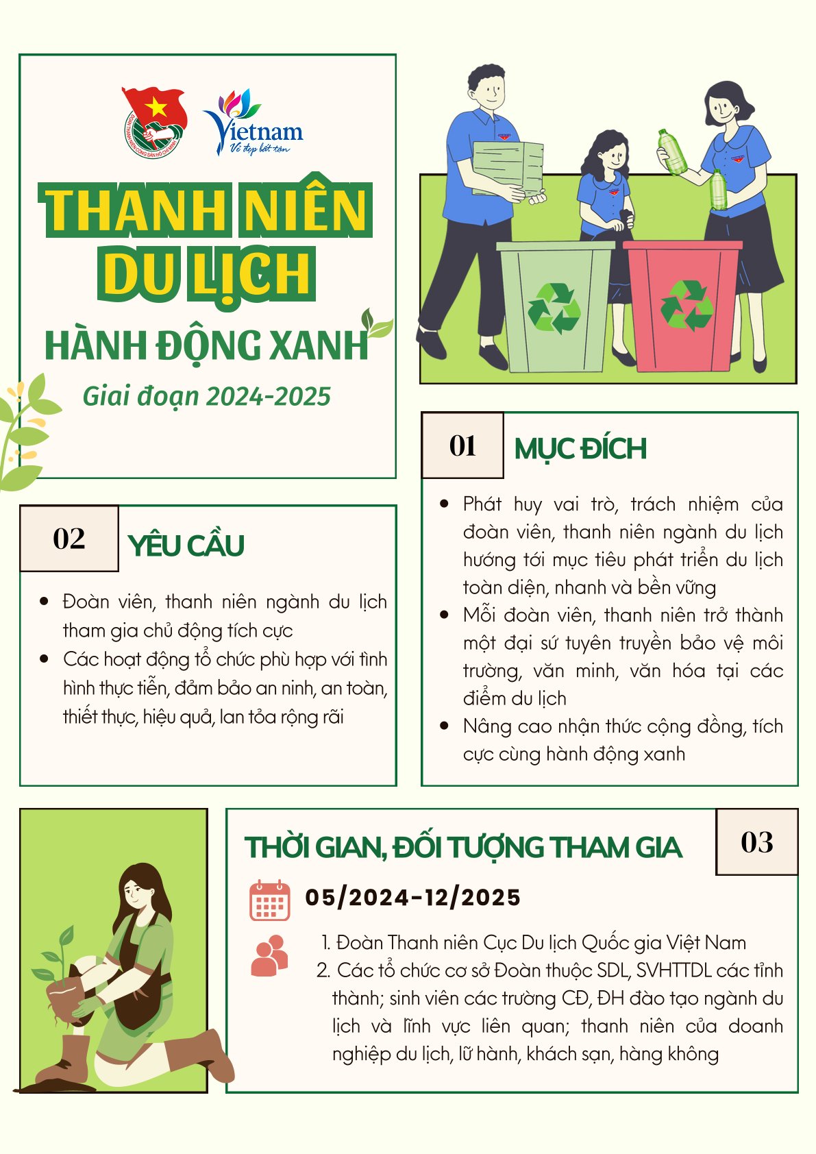 [Infographic] Đoàn Thanh niên Cục Du lịch Quốc gia Việt Nam phát động phong trào “Thanh niên du lịch hành động Xanh” giai đoạn 2024 - 2025