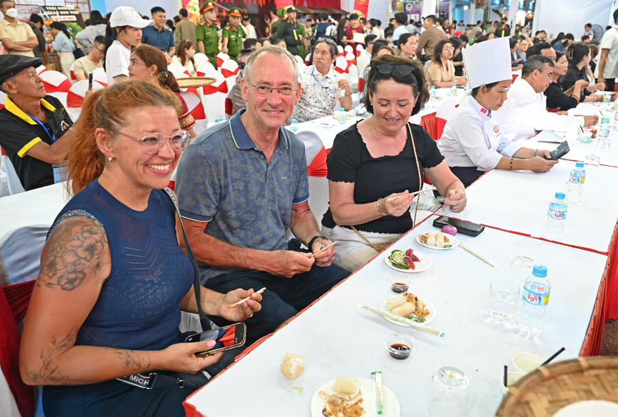 Du khách quốc tế trải nghiệm Ngày hội tinh hoa Ẩm thực Gia Lai năm 2026. Ảnh: TITC