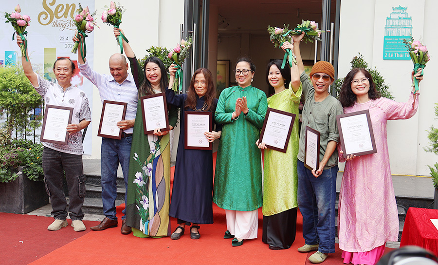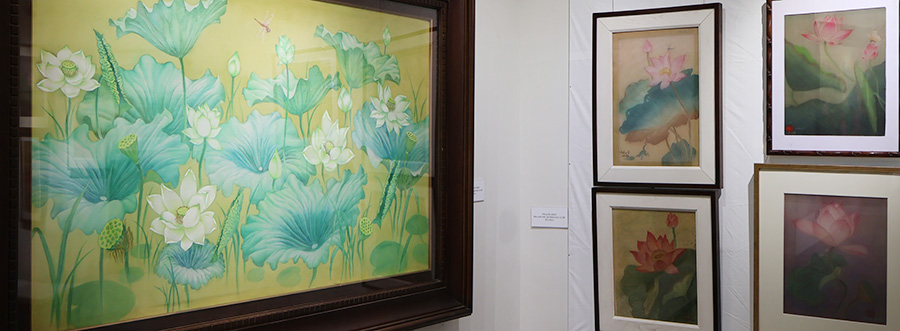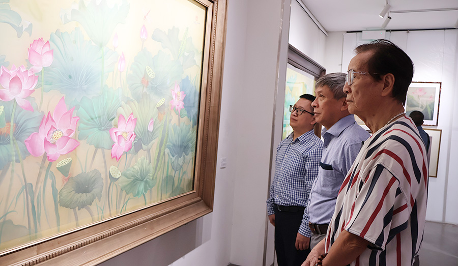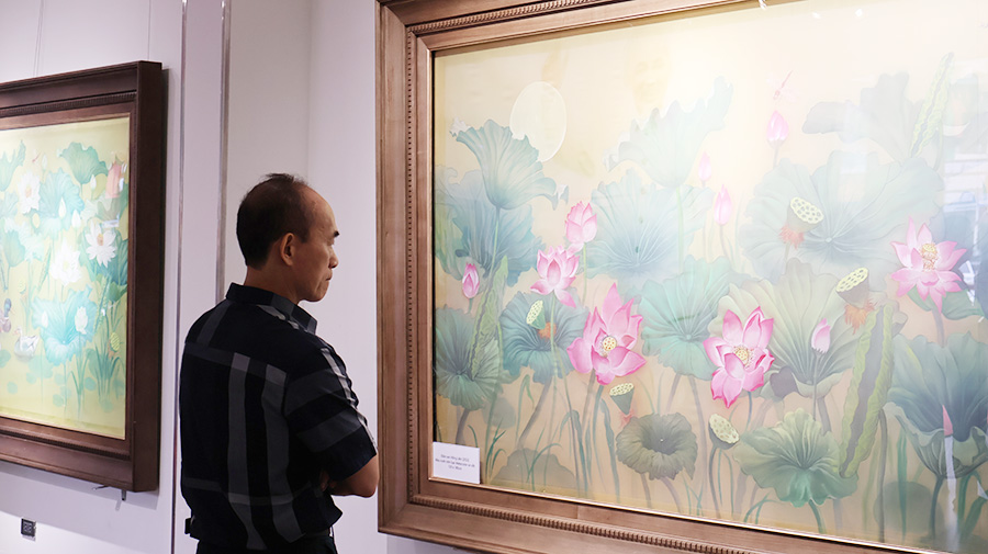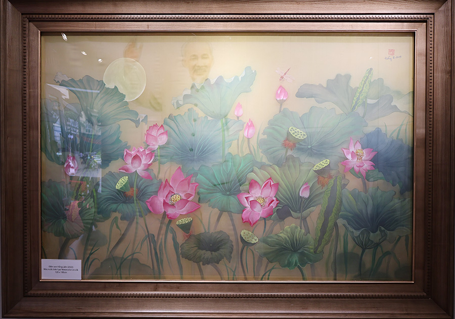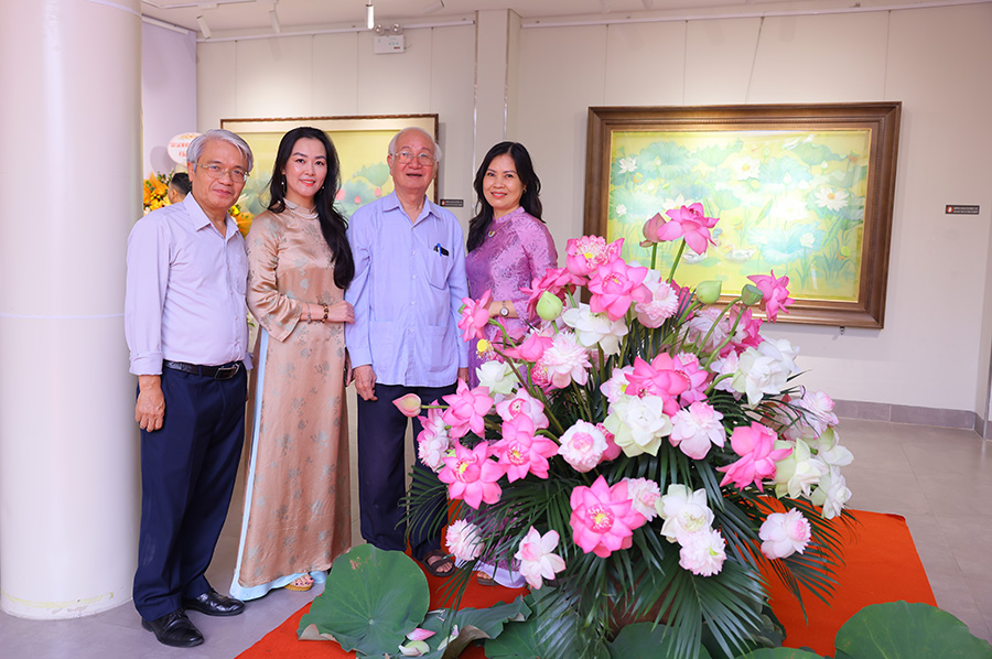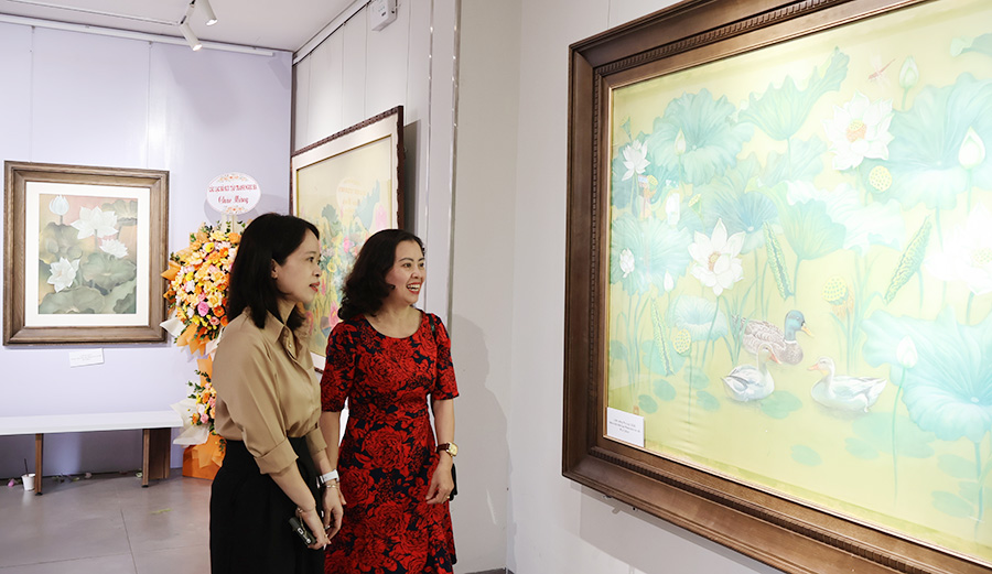 Hoa sen trong triển lãm không dừng lại ở những sắc màu rực rỡ, mà còn là sự kết tinh của tư duy sáng tạo hiện đại trên nền tảng di sản, là sự cảm nhận tinh tế, mềm mại của những đóa sen trên lụa, mang đậm nét nữ tính và chiều sâu nội tâm; là sự phóng khoáng, mới mẻ của các thể nghiệm trên chất liệu sơn dầu, sơn mài hay giấy dó truyền thống.