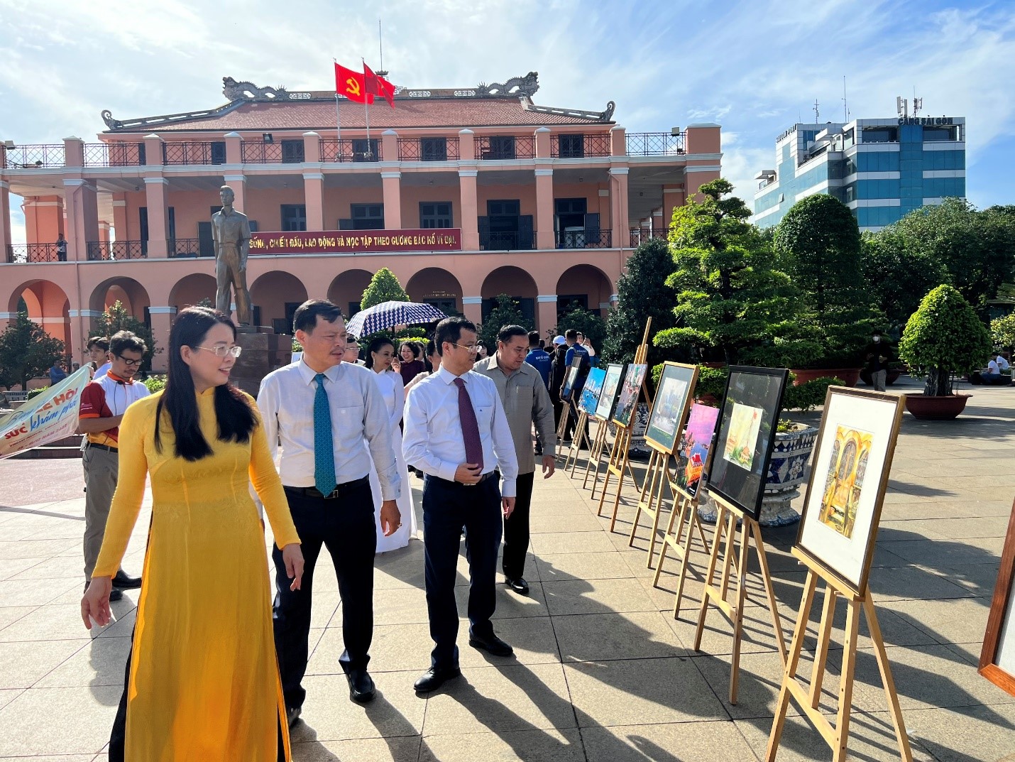 Phó Tổng cục trưởng Nguyễn Lê Phúc tham quan triển lãm tranh tại Bến Nhà Rồng. Ảnh: BTC