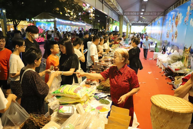 Tại lễ khai mạc Người dân và du khách tham quan, mua sắm tại gian hàng trưng bày giới thiệu các sản phẩm OCOP, nông sản đặc trưng của các tỉnh Điện Biên, Sơn La, Hà Giang