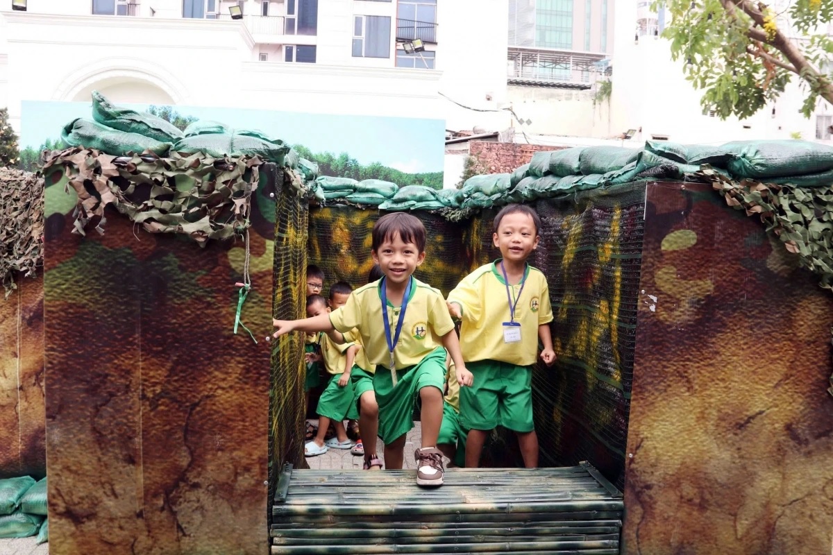 Học sinh trải nghiệm dưới giao thông hào (Ảnh: X.K)