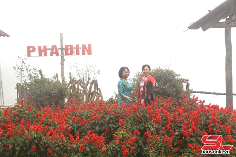 Du khách tham quan, chụp ảnh tại Pha Đin Top, xã Bình Thuận.