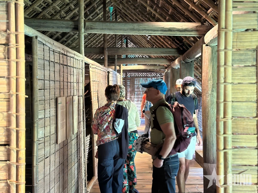 Du khách tìm hiểu kiến trúc và đời sống văn hóa của người Ê Đê tại khu trưng bày ngoài trời.