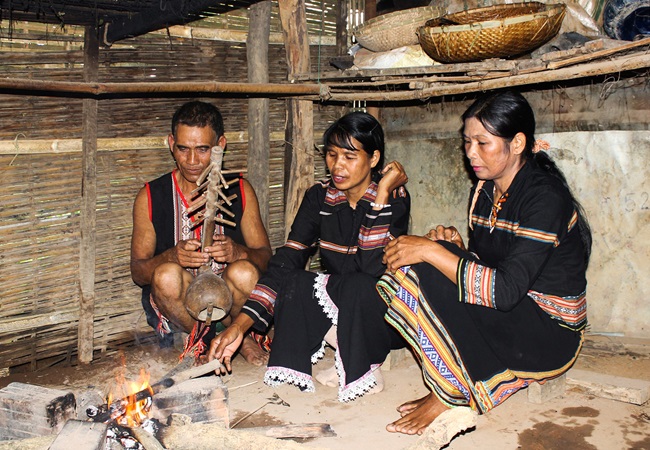 Hát dân ca với nhạc cụ truyền thống bên bếp lửa nhà sàn. Ảnh: H.T