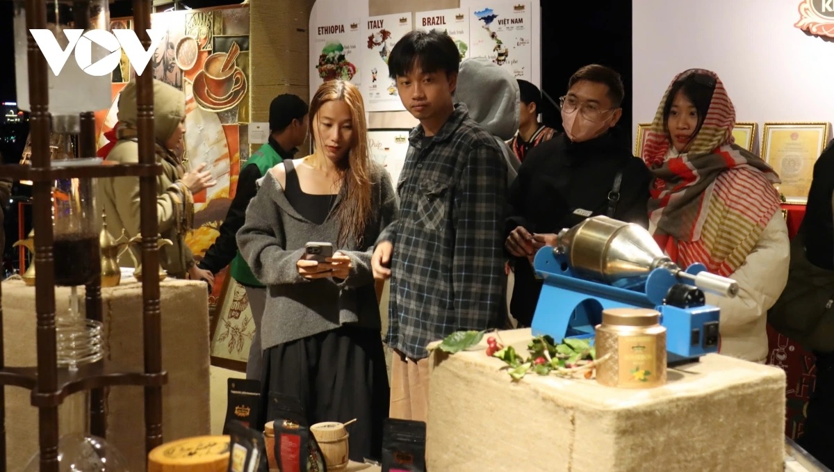 Du khách tham quan, trải nghiệm không gian trưng bày, rang xay và thưởng thức cà phê trong khuôn khổ Lễ hội Di sản cà phê toàn cầu 2025.