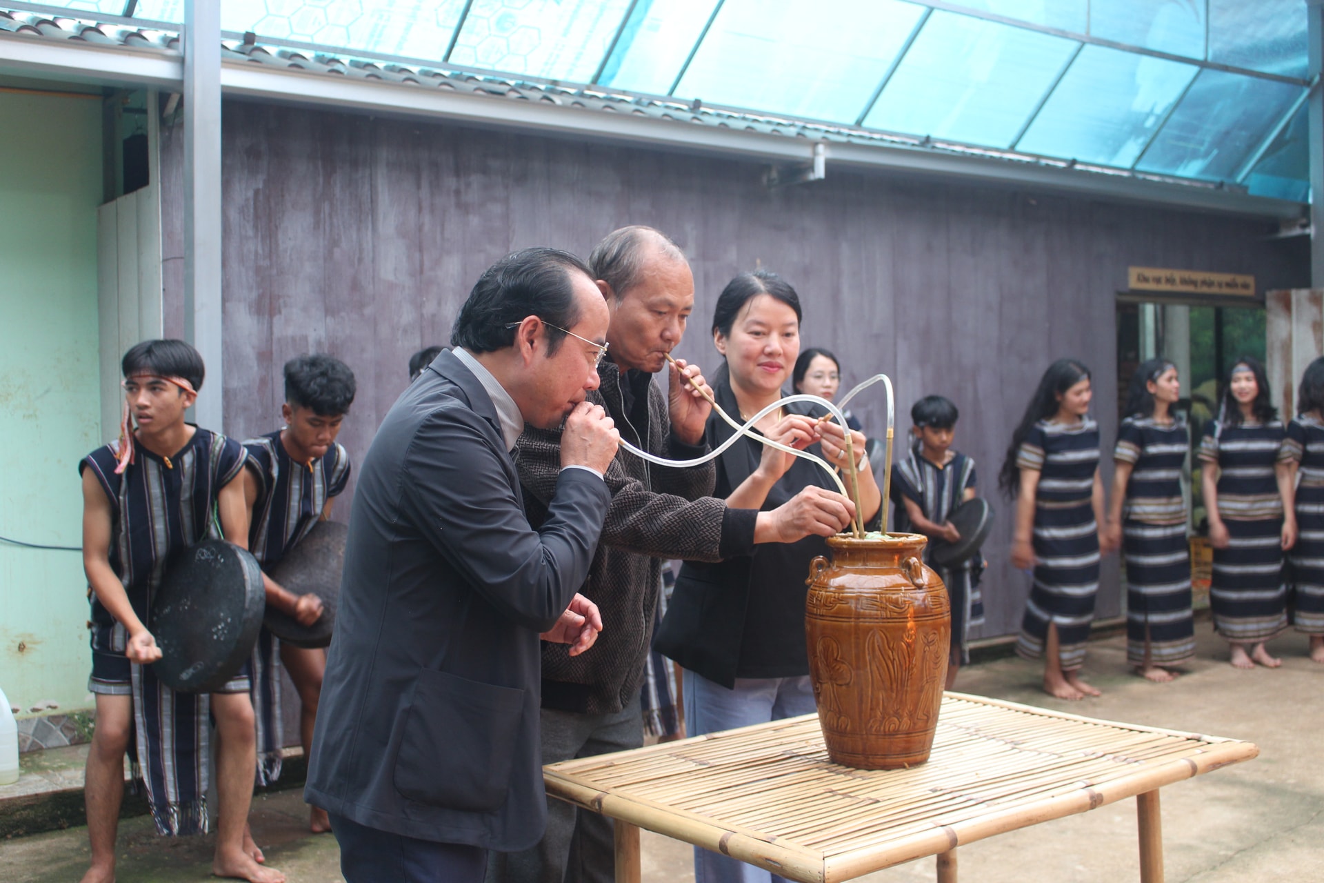 Thưởng thức rượu cần trong âm thanh cồng chiêng