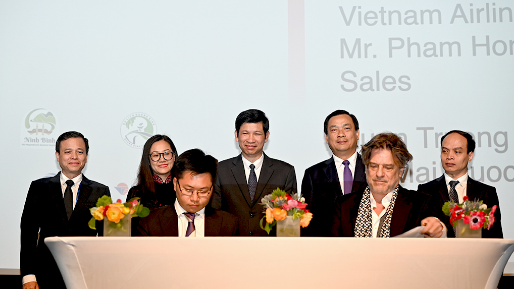Lễ ký kết hợp tác giữa các doanh nghiệp Việt Nam và Hoa Kỳ về thúc đẩy phát triển du lịch, điện ảnh (Ảnh: TITC)