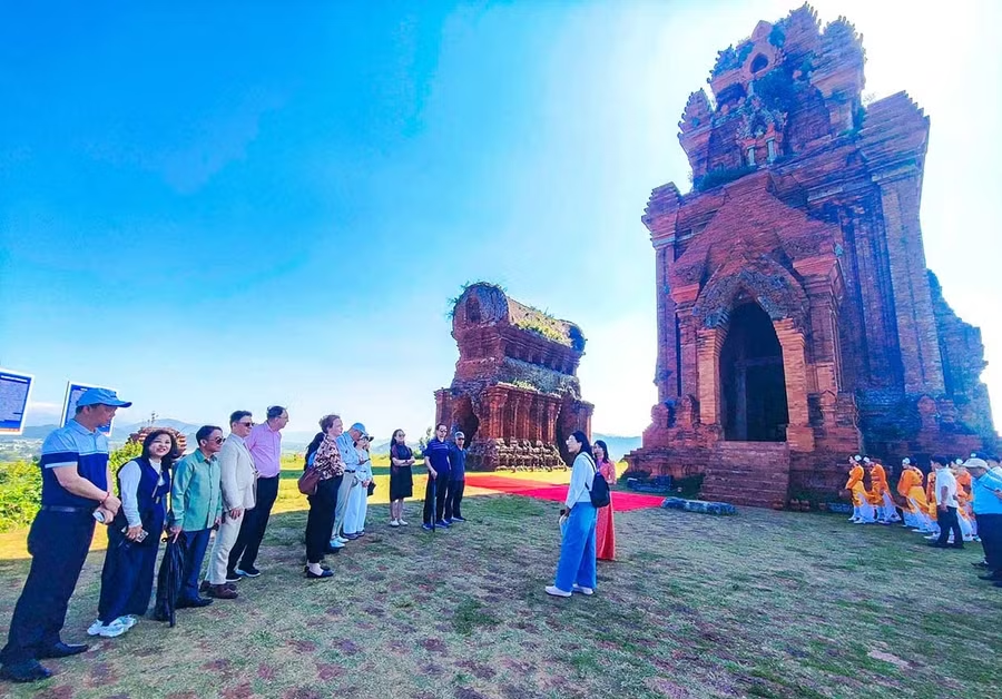Đoàn đại sứ, tổng lãnh sự các nước tham quan tháp Bánh Ít trong khuôn khổ Tuần lễ khai mạc Năm Du lịch quốc gia - Gia Lai 2026. Ảnh: Đoan Ngọc