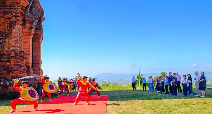 Tiếp đó, các võ sinh Trung tâm Võ thuật cổ truyền Bình Định biểu diễn những bài quyền, binh khí đặc trưng. Những động tác dứt khoát, mạnh mẽ nhưng linh hoạt đã giúp giới thiệu tinh hoa võ học của vùng đất Võ. Sự kết hợp giữa nghệ thuật biểu diễn tại không gian di tích tạo nên trải nghiệm mới, giúp du khách quốc tế dễ dàng cảm nhận nét văn hóa đặc trưng của Gia Lai.
