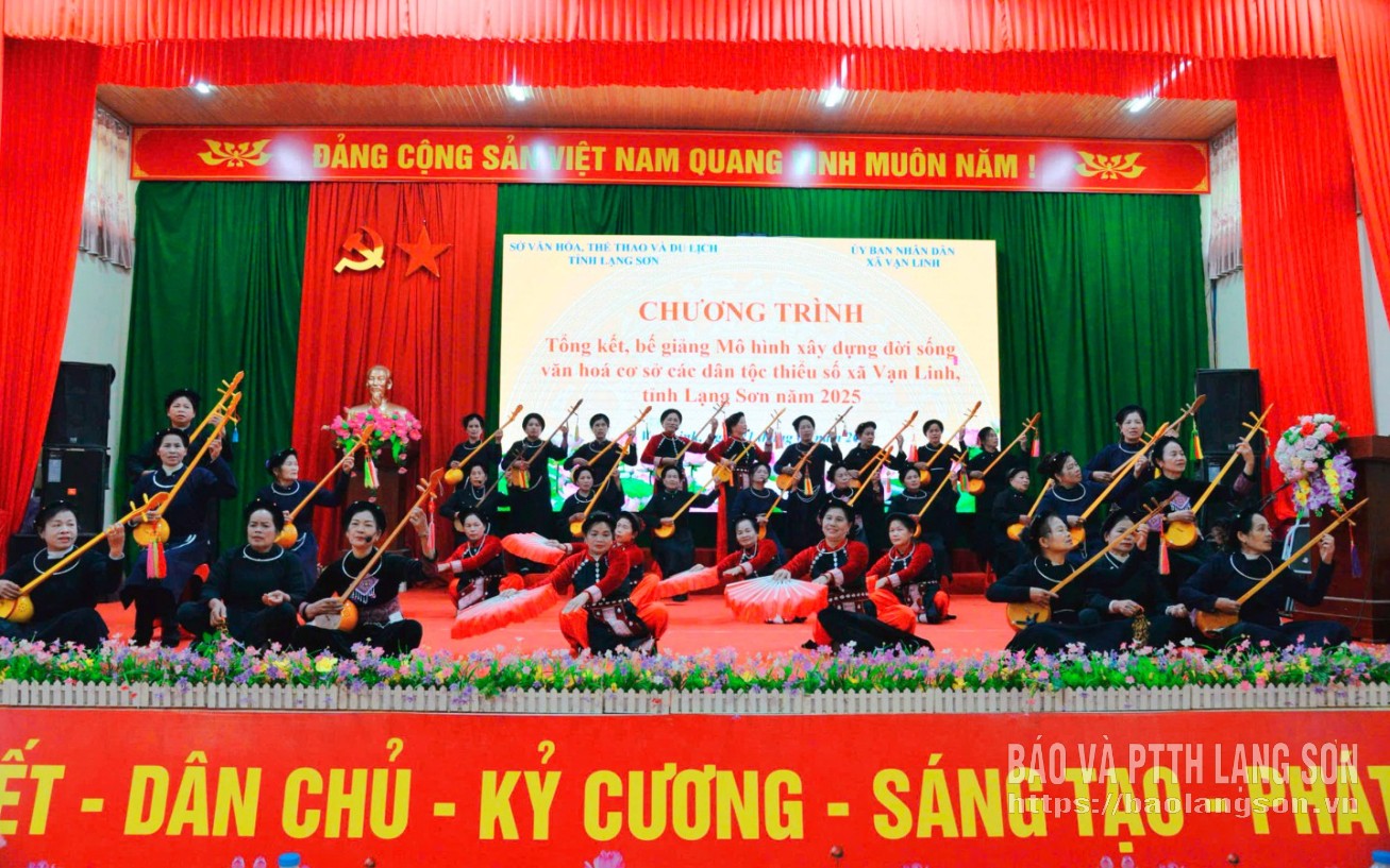 Người dân xã Vạn Linh biểu diễn các làn điệu hát then, đàn tính tại lễ bế giảng mô hình xây dựng đời sống văn hoá cơ sở các dân tộc thiểu số