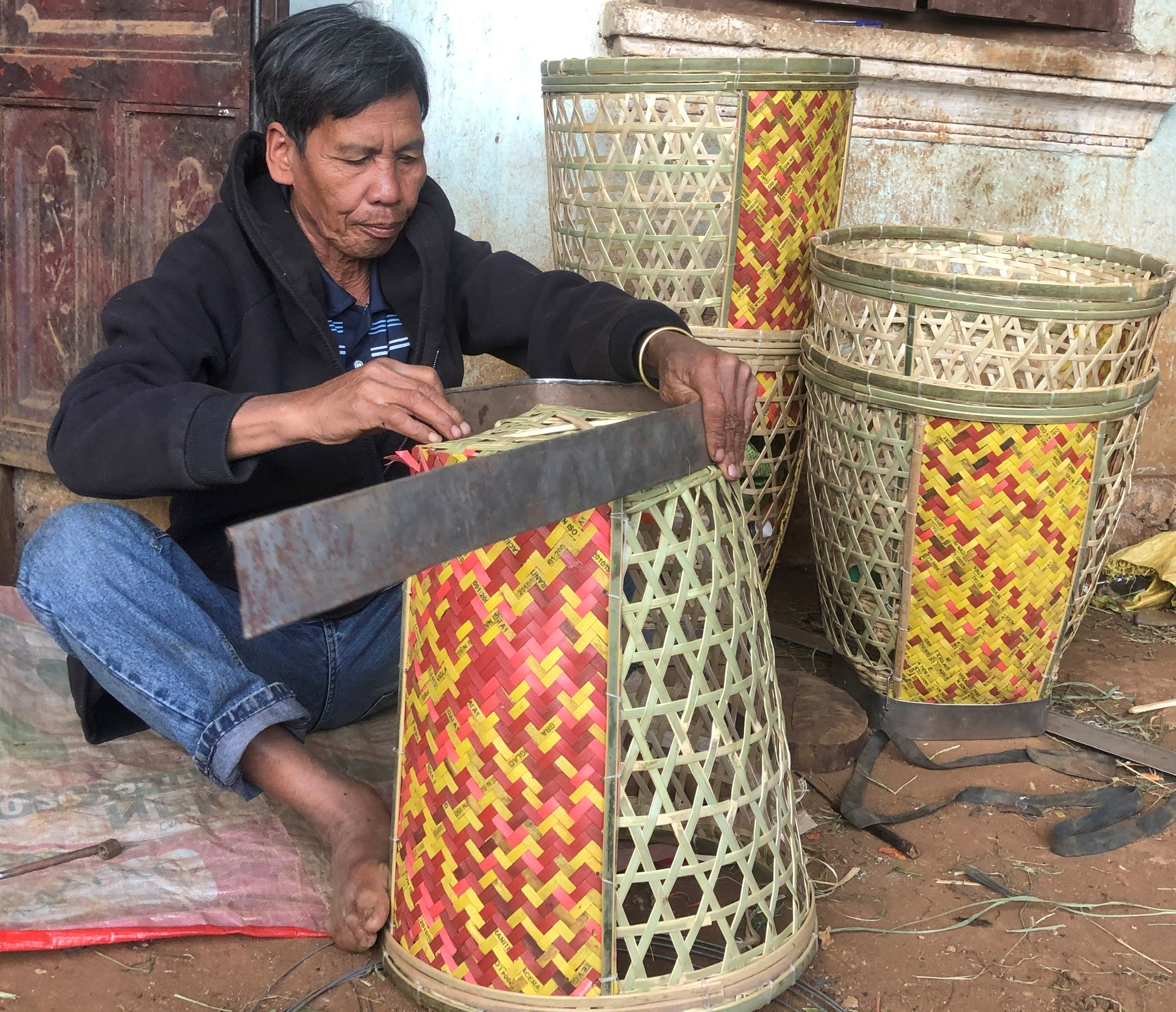 Ngồi kế bên ông Ưnh, ông Bôn thật thà nói: “Mình đan gùi 1 tuần mới xong 1 chiếc cũng bán với giá 200 ngàn đồng”. Tuy nhiên, ông Bôn cho rằng, rọ và gùi người dân đều cần trong đời sống. Do đó, có người làm việc này thì phải có người làm việc khác.