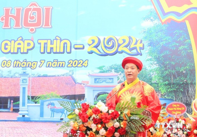 Ông Nguyễn Phúc Vinh, Phó Chủ tịch UBND thành phố Móng Cái phát biểu khai mạc Lễ hội đình Trà Cổ năm 2024. Ảnh: TTXVN