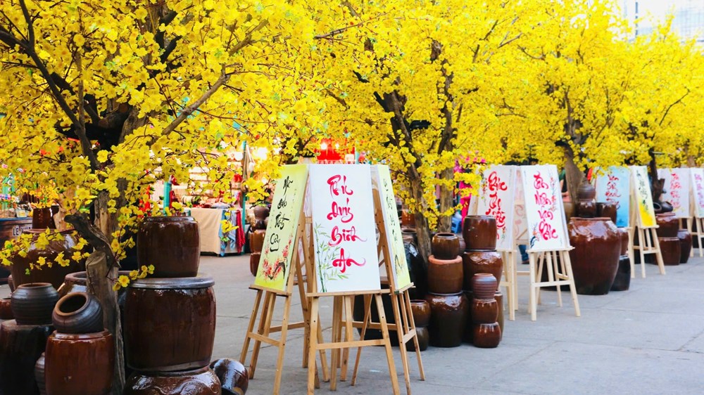Nhắc đến Lễ hội Tết Việt, đường mai và phố ông đồ luôn là những không gian được mong chờ nhất. Năm nay, phố ông đồ được đầu tư kĩ lưỡng cả về hình thức lẫn nội dung. Hơn 50 ông đồ trẻ, là những người yêu và thực hành nghệ thuật thư pháp, sẽ bày mực tàu, giấy đỏ cùng nhiều vật dụng trang trí gợi nhớ không khí tết xưa dọc các tuyến Phạm Ngọc Thạch, Nguyễn Thị Minh Khai. Người dân và du khách có thể xin chữ đầu năm, tham gia các workshop trải nghiệm tại chỗ và gửi gắm mong ước năm mới qua những câu chúc thư pháp.