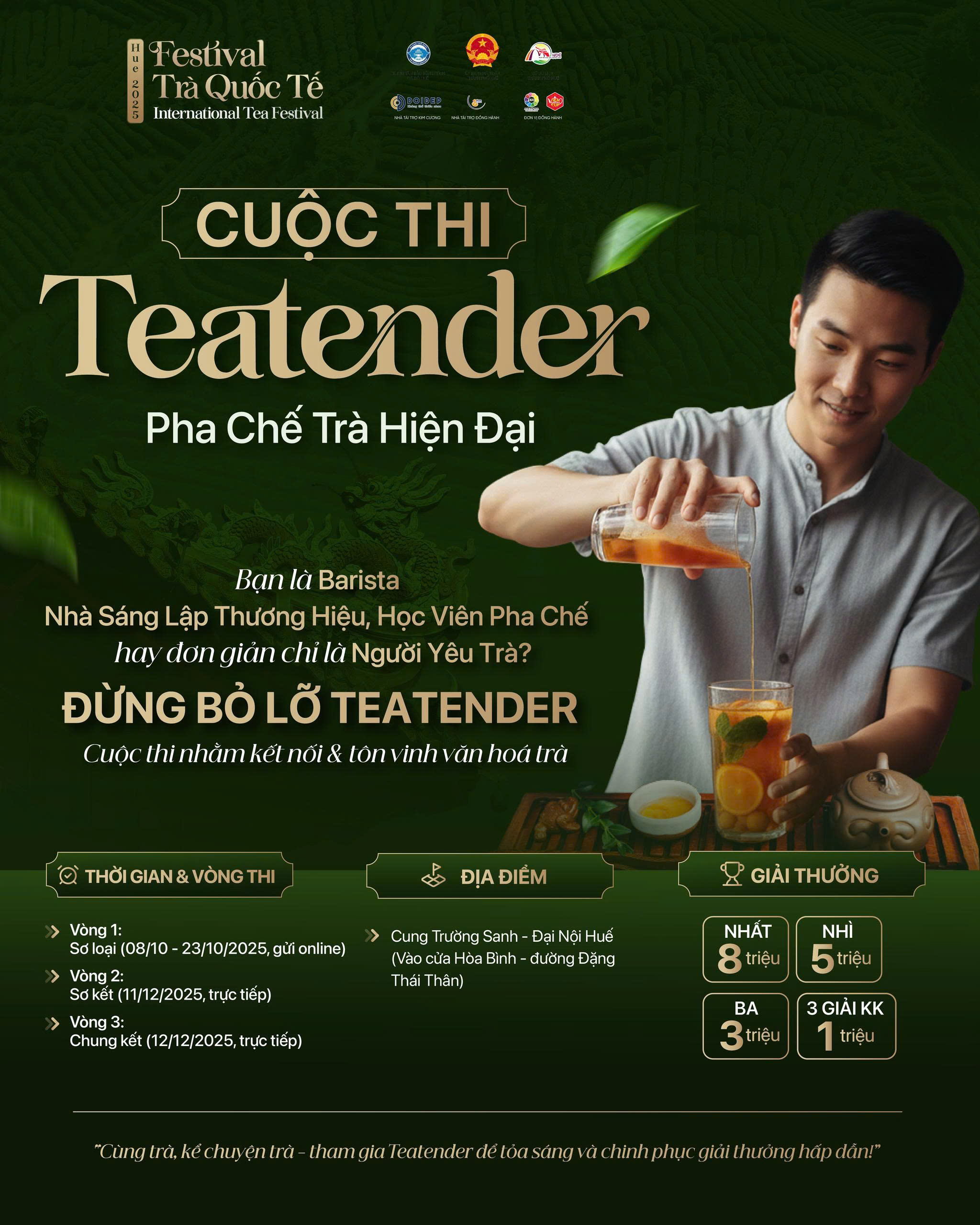 Tham gia Liên hoan Trà Quốc tế - Huế 2025, du khách sẽ được thưởng thức tinh hoa và nghệ thuật trà đạo của nhiều quốc gia cùng nhiều hoạt động hưởng ứng sôi nổi do các thương hiệu trà nổi tiếng tổ chức.