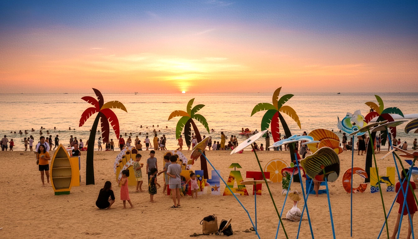 Không gian bãi biển được trang trí với các chủ đề, chủ điểm theo mùa - Ảnh: H.Tr