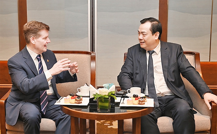 Cục trưởng Cục Du lịch Quốc gia Việt Nam Nguyễn Trùng Khánh trao đổi thông tin về tình hình du lịch Việt Nam với Chủ tịch Ant International Douglas Feagin (Ảnh: TITC)