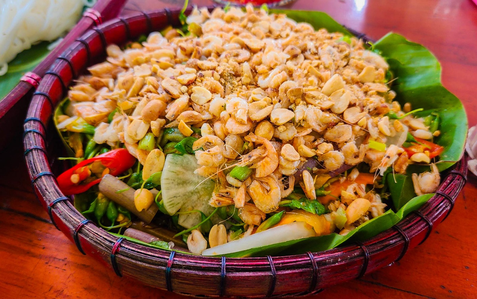 Gỏi tép đồng bông điên điển, món đặc trưng mùa nước nổi.