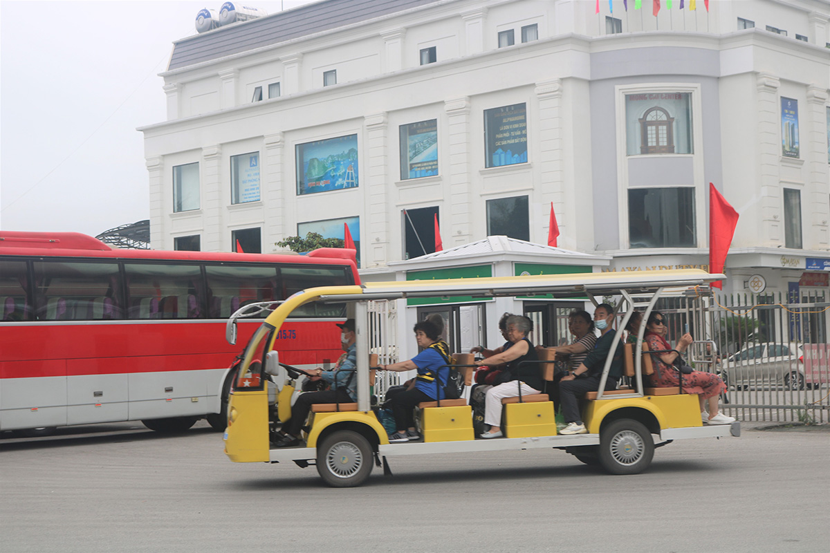 Du khách tham quan TP. Móng Cái bằng xe điện (Ảnh: TTVH TP. Móng Cái)