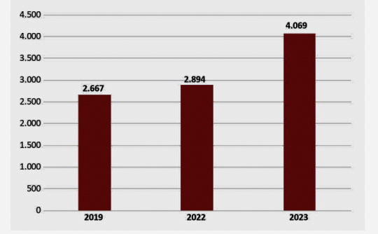 Tính đến hết năm 2023, cả nước có 4.069 doanh nghiệp kinh doanh lữ hành quốc tế, tăng thêm 1.175 doanh nghiệp so với năm 2022. Trong tổng số 4.069 doanh nghiệp có 1.276 doanh nghiệp cổ phần, 38 doanh nghiệp có vốn đầu tư nước ngoài, 2.749 công ty TNHH và 06 doanh nghiệp tư nhân.