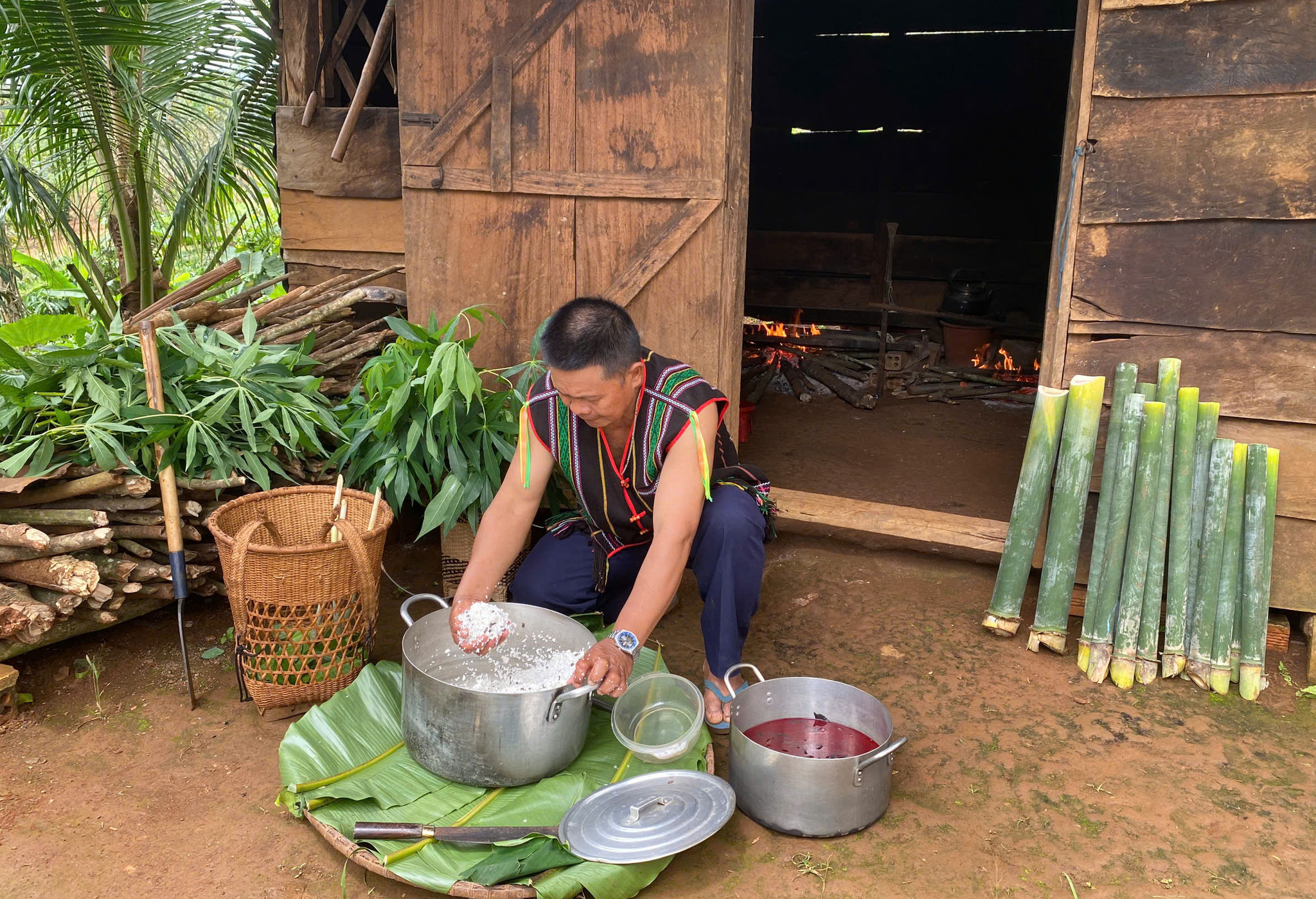 Mỗi ngày, khói bếp vẫn đều đặn tỏa lên, quyện cùng hương thơm của những món ăn đậm chất núi rừng. Những món như: cơm lam, canh thụt, cà đắng giã, đọt mây nướng, lá mì xào… không chỉ đơn thuần là món ăn, mà còn là ký ức được lưu truyền qua nhiều thế hệ.
