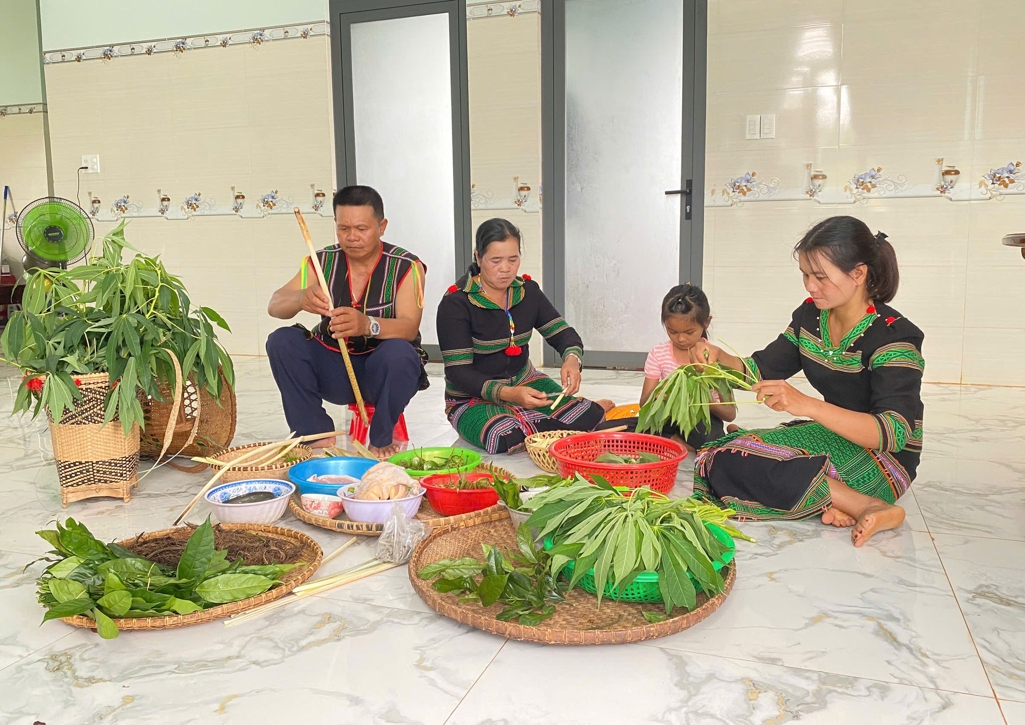 Trong bữa cơm sum họp của người M'nông nhất định không thể thiếu đọt mây, lá bép - những nguyên liệu quen thuộc làm nên món ăn truyền thống. Qua đó, chúng tôi cũng muốn truyền lại cho con cháu cách chế biến và gìn giữ hương vị của dân tộc mình. - Ông Điểu M’rưng, tổ dân phố Đắk R’moan, phường Nam Gia Nghĩa |