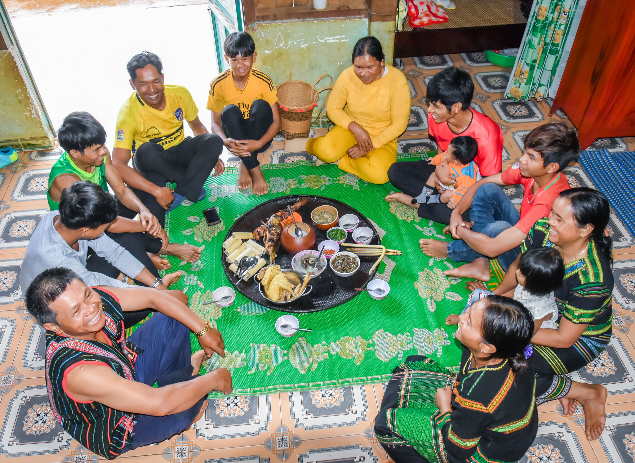 Ở gia đình ông Điểu M’rưng, mỗi dịp cuối tuần hay lễ, tết, không khí sum họp luôn ấm cúng bên bếp lửa. Những món ăn truyền thống được chuẩn bị công phu, không chỉ để thưởng thức mà còn là dịp để các thế hệ cùng nhau ôn lại những câu chuyện xưa, cùng học lại cách chế biến, cách gìn giữ hương vị.