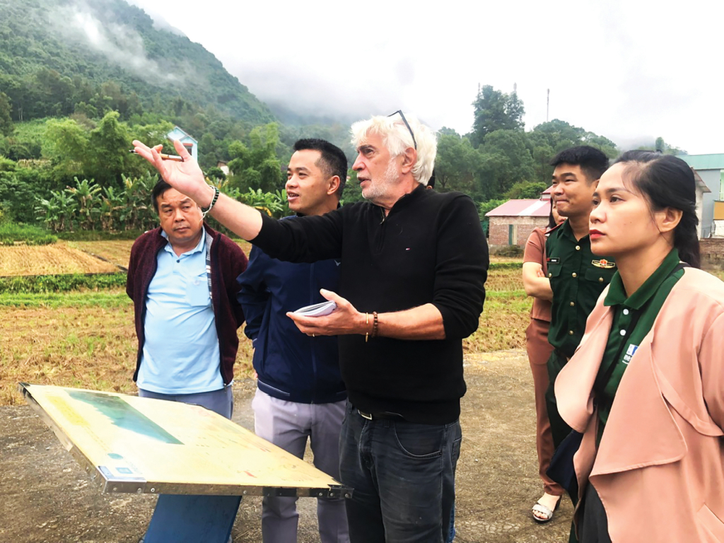 Trong nhiều lần đi thực địa, ông Guy Martini và cán bộ Ban Quản lý CVĐC Non nước Cao Bằng dành nhiều thời gian đến tìm hiểu, nghiên cứu các bản làng của bà con Tày, Nùng, Dao, Lô Lô… nơi lưu giữ chiều sâu văn hóa bản địa đặc sắc. Tại bản làm hương thơm Phja Thắp, làm giấy bản Dìa Trên, làm ngói máng Lũng Rì (xã Quảng Uyên), ông chăm chú lắng nghe bà con Nùng An kể về nghề làm hương thơm, giấy bản, ngói máng, các công đoạn, từ chọn nguyên liệu, phơi giấy, se hương, đến cách giữ nghề qua nhiều thế hệ và tư vấn cho bà con nâng tầm sản phẩm làng nghề truyền thống. Với ông, mỗi sản phẩm thủ công không chỉ là hàng hóa, mà là ký ức văn hóa, là tri thức bản địa được lưu truyền từ nghìn năm cần được trân trọng. Ông gọi đó là “di sản sống” - thứ không thể trưng bày trong tủ kính, mà phải được nuôi dưỡng bằng sinh kế bền vững của cộng đồng.