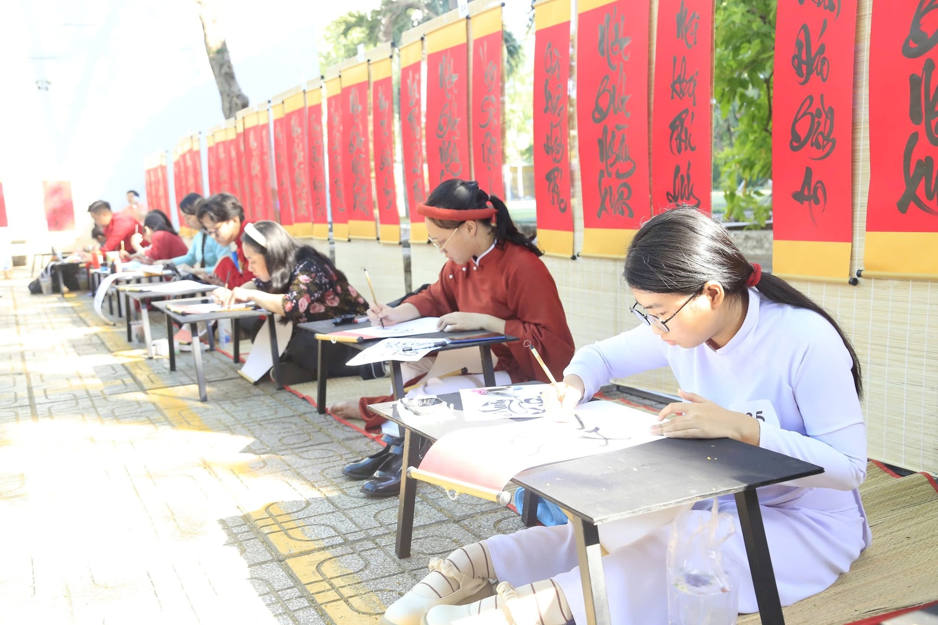 Thi viết thư pháp là một hoạt động truyền thống của chợ Hoa Xuân “Trên bến dưới thuyền” TPHCM. (Ảnh: BTC).