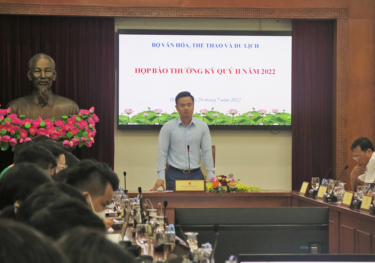 Chánh Văn phòng Bộ VHTTDL Lê Đức Trung chủ trì buổi họp báo (Ảnh: TITC)