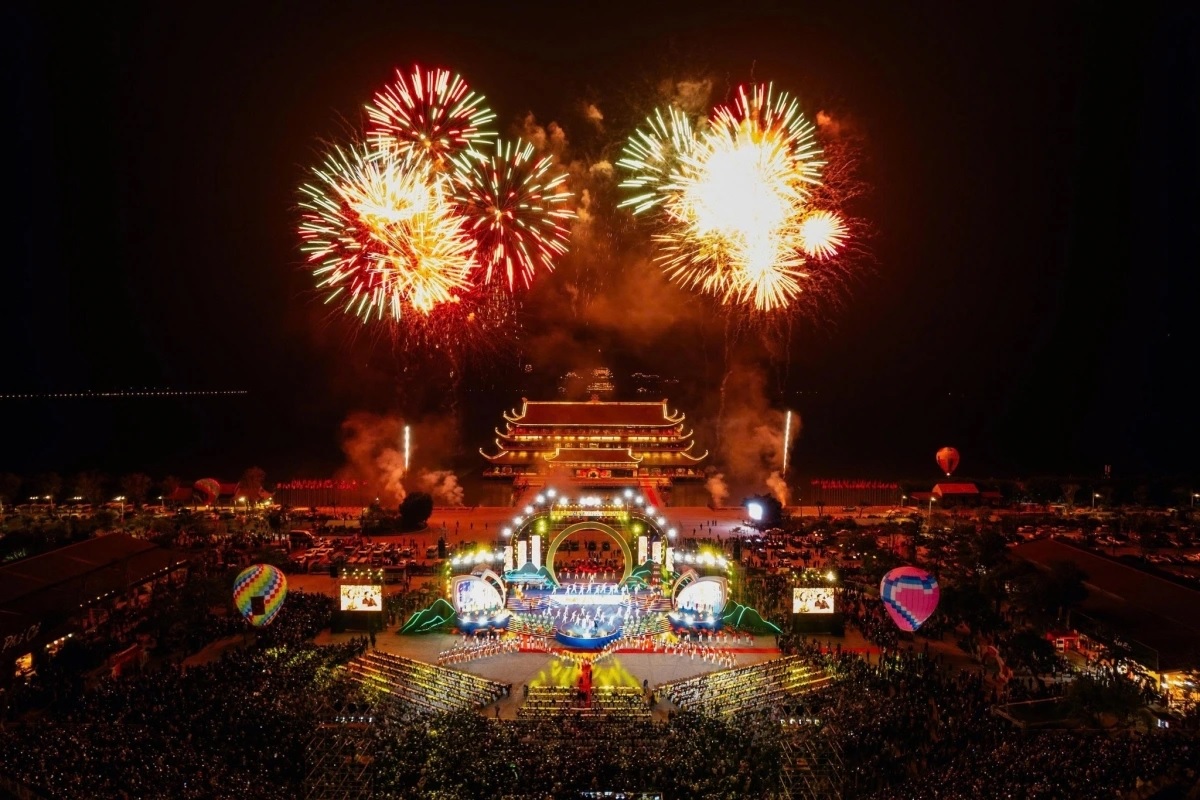 Chương trình nghệ thuật đặc sắc sẽ được tổ chức vào tối 28/2/2026 tại Trung tâm Hội nghị Quốc tế Vesak cùng màn trình diễn pháo hoa rực rỡ. Nguồn: Khu du lịch Tam Chúc