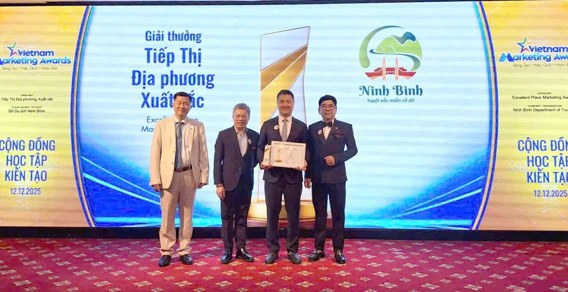 Sở Du lịch Ninh Bình vừa được Hiệp hội Marketing Việt Nam (VMA) và Ban tổ chức Vietnam Marketing Awards 2025 vinh danh ở hạng mục “Điểm đến có chiến lược marketing xuất sắc nhất” năm 2025
