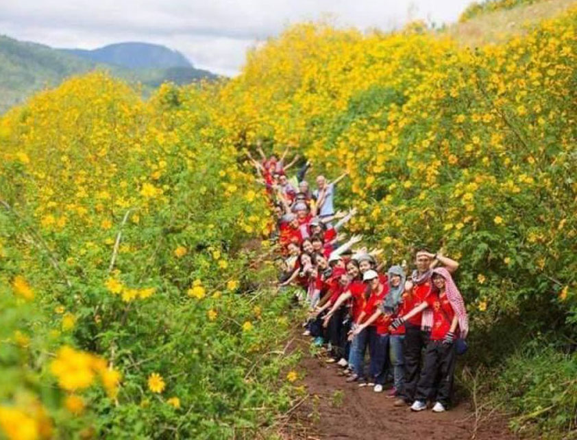 Mùa hoa dã quỳ tại Vườn quốc gia Ba Vì thu hút đông đảo giới trẻ đến tham quan. Ảnh: Trúc Như