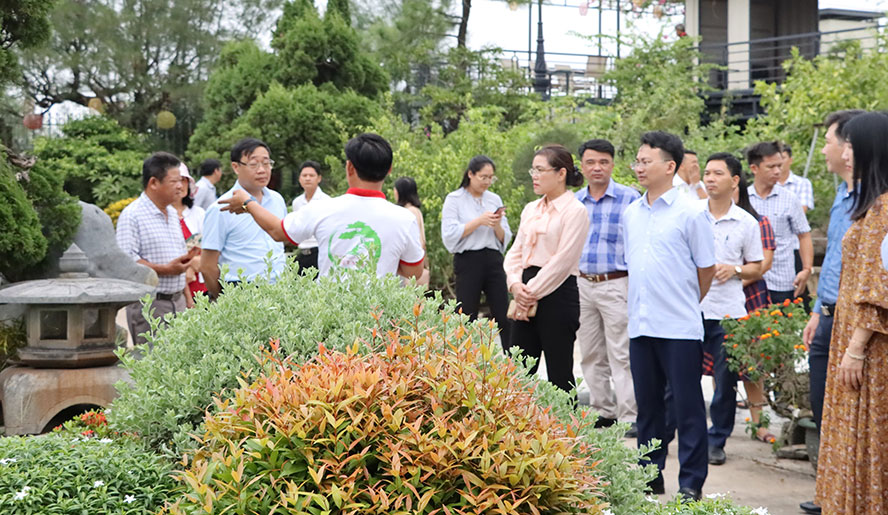 Trước khi diễn ra tọa đàm, các đại biểu tham quan mô hình du lịch làng nghề của Hợp tác xã Hồng Vân.