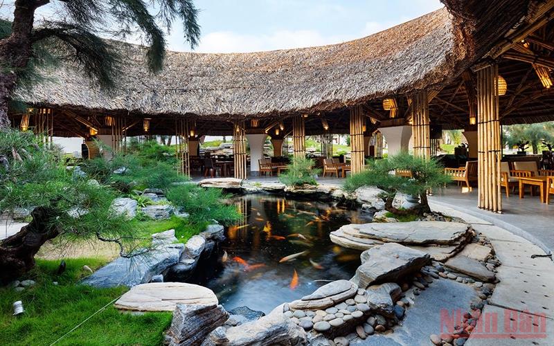 Gozo Brew House mang hình ảnh cánh diều đón gió đặt giữa trung tâm khu nghỉ dưỡng với điểm nhấn là mái lá tròn bao quanh hồ cá koi thơ mộng.