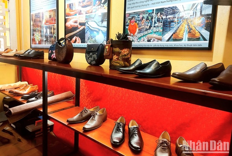 Một góc trưng bày sản phẩm thủ công nghề da-giầy.