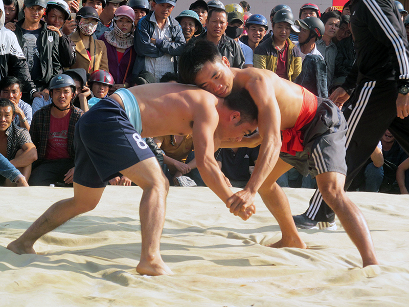 Đấu vật trong lễ hội cầu yên ở làng Đông Dương (xã Quảng Phương).