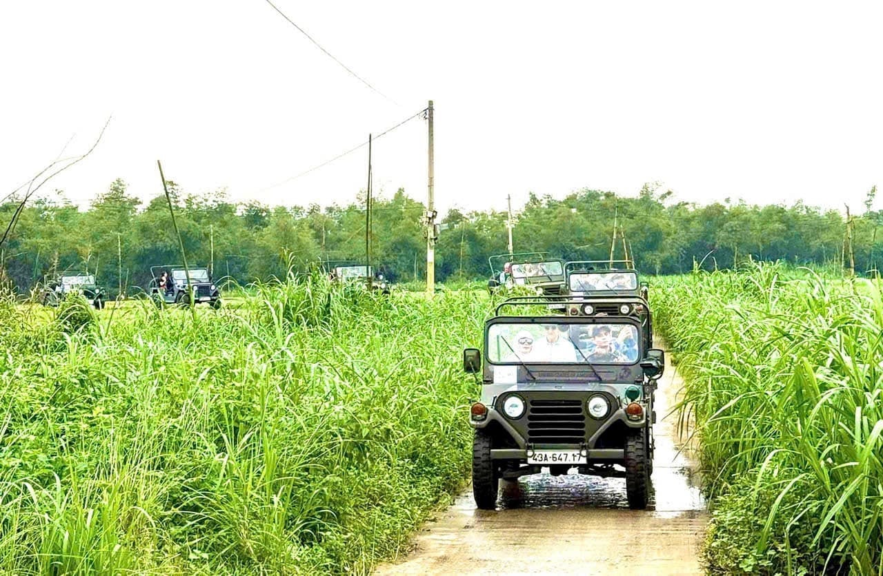 Du khách tham quan bằng xe Jeep qua làng Vạn Buồng - Ảnh: T.T