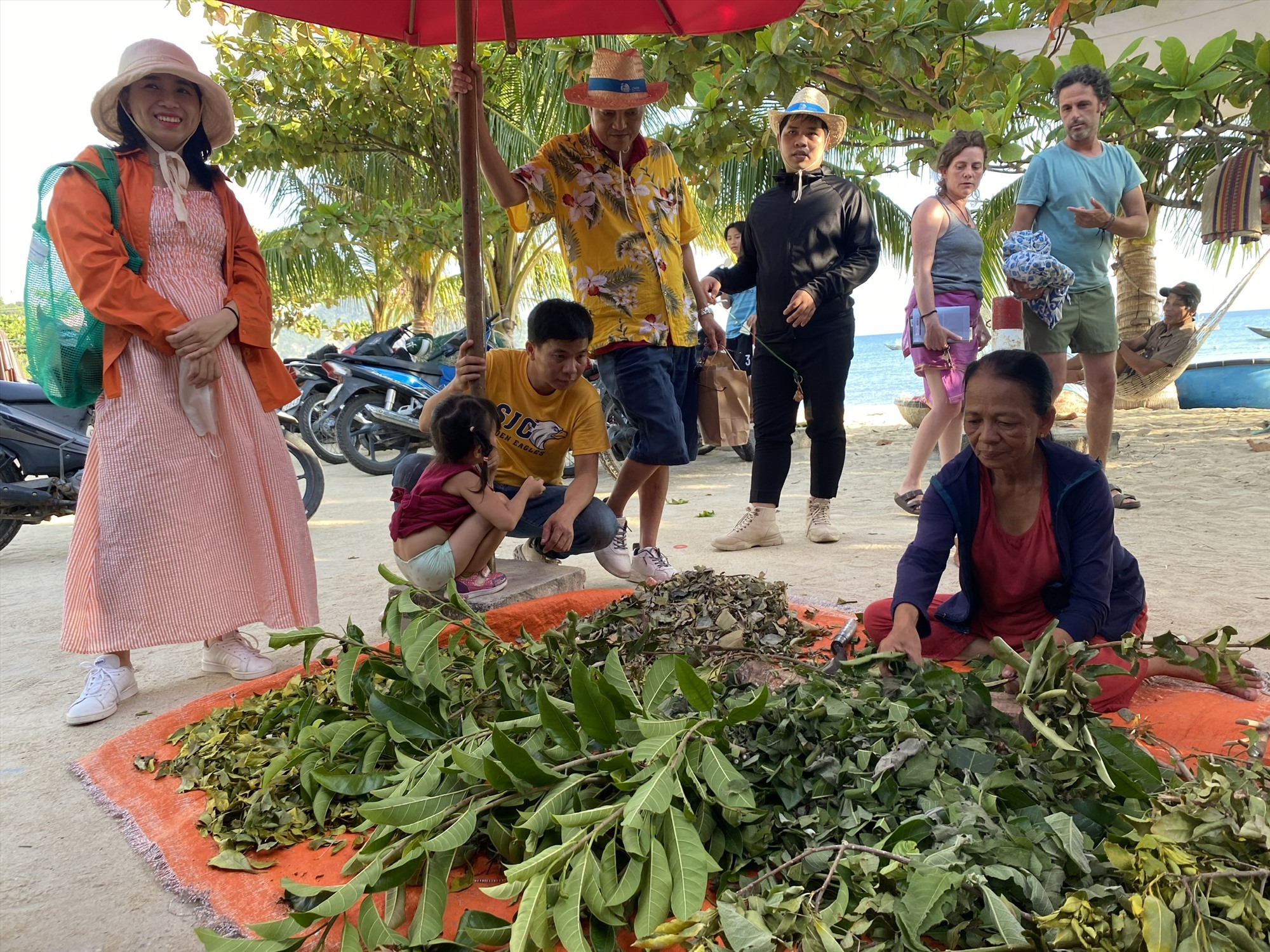 Trải nghiệm nghề hái lá rừng làm nước uống. Ảnh: V.L