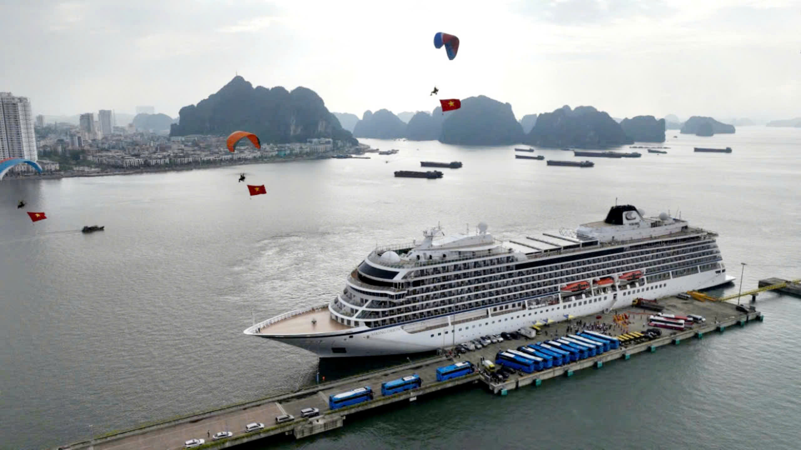 Ngày 21/10, tàu biển du lịch quốc tế Viking Orion cập Cảng tàu khách quốc tế Hạ Long đưa vị khách 3 triệu tới Quảng Ninh.