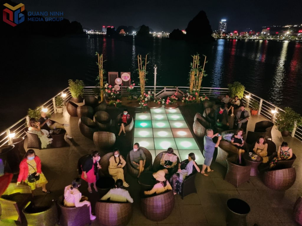 Du khách trải nghiệm đêm ven bờ di sản trên du thuyền nhà hàng Sea Octopus. Ảnh: Phan Hằng