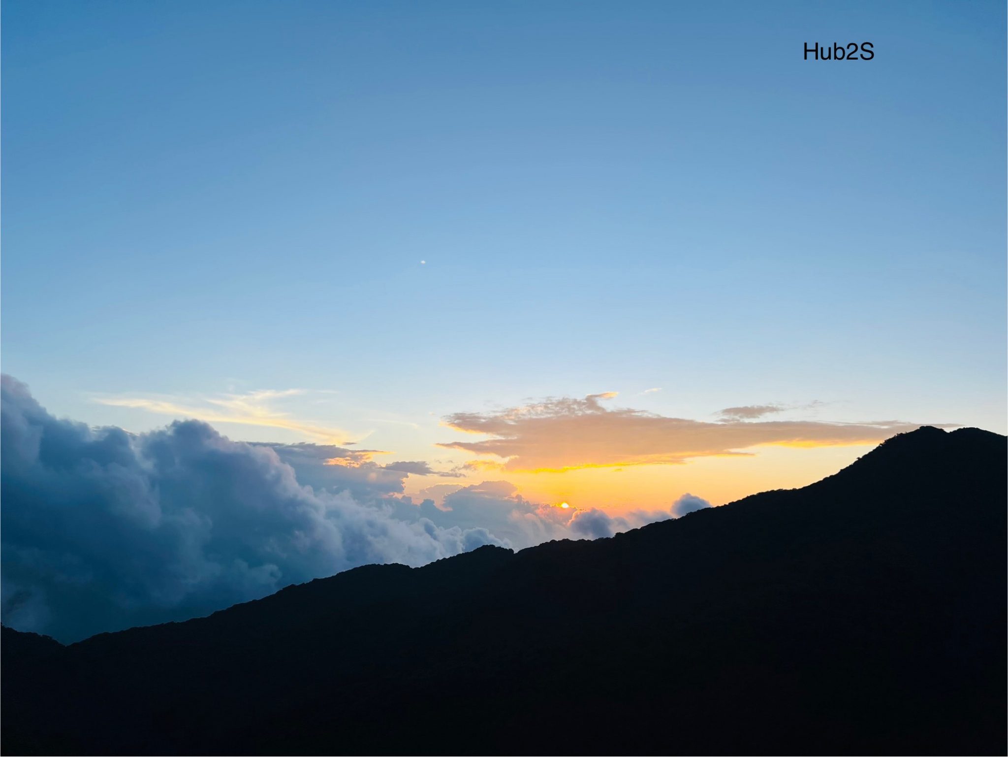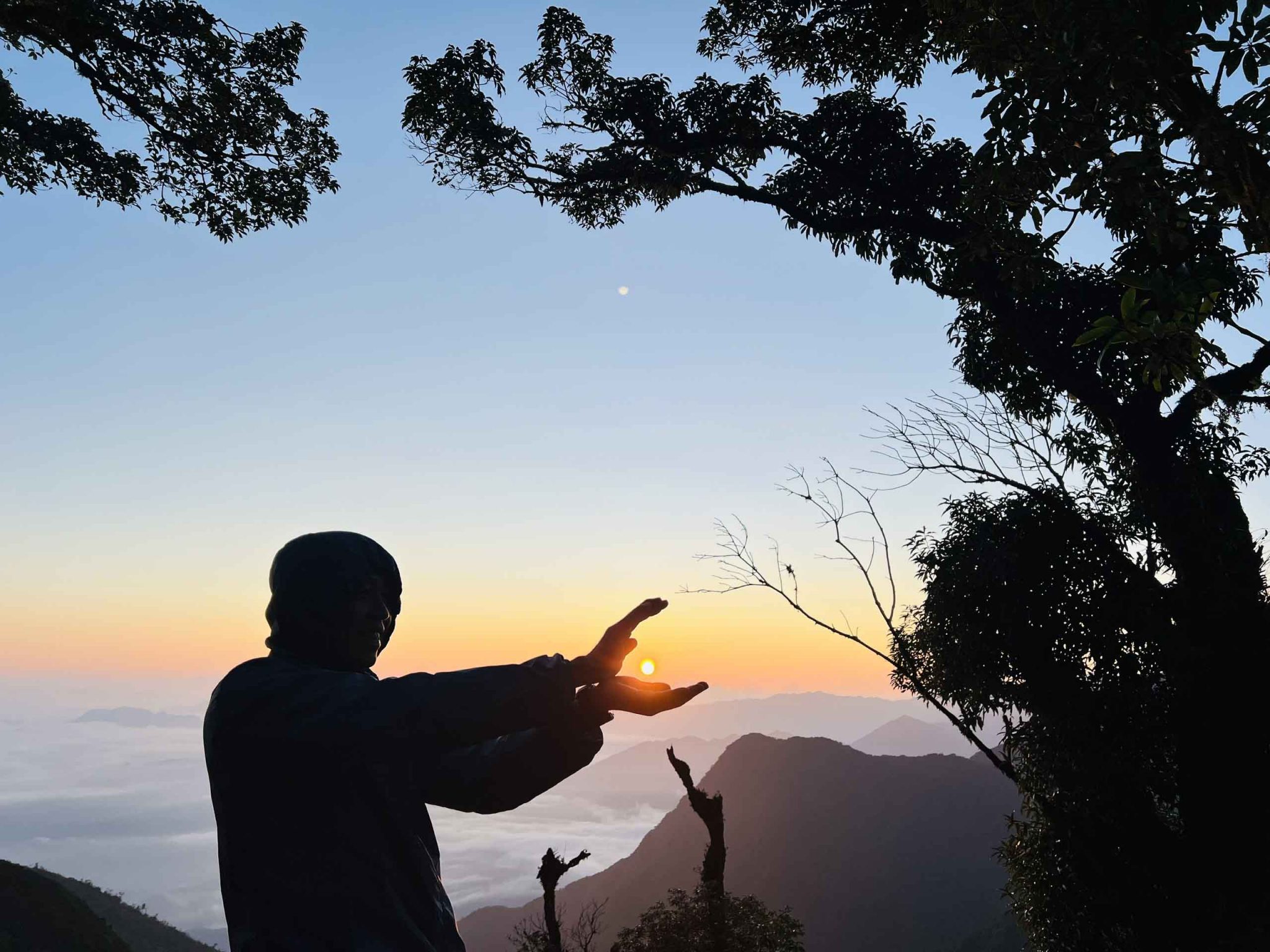 Ánh bình minh ló dạng trên sống lưng khủng long từ lán ở độ cao 2.500m. Ảnh: Hub2S Việt Nam