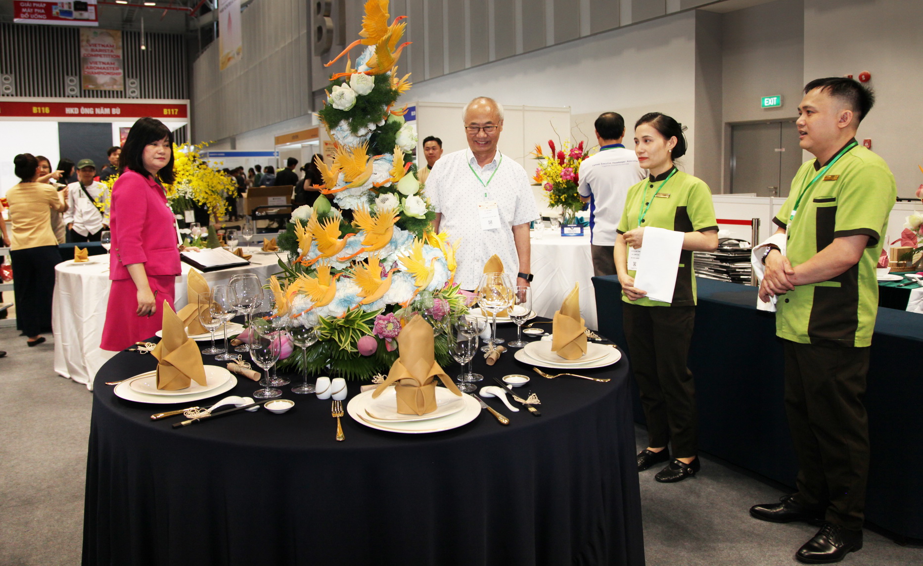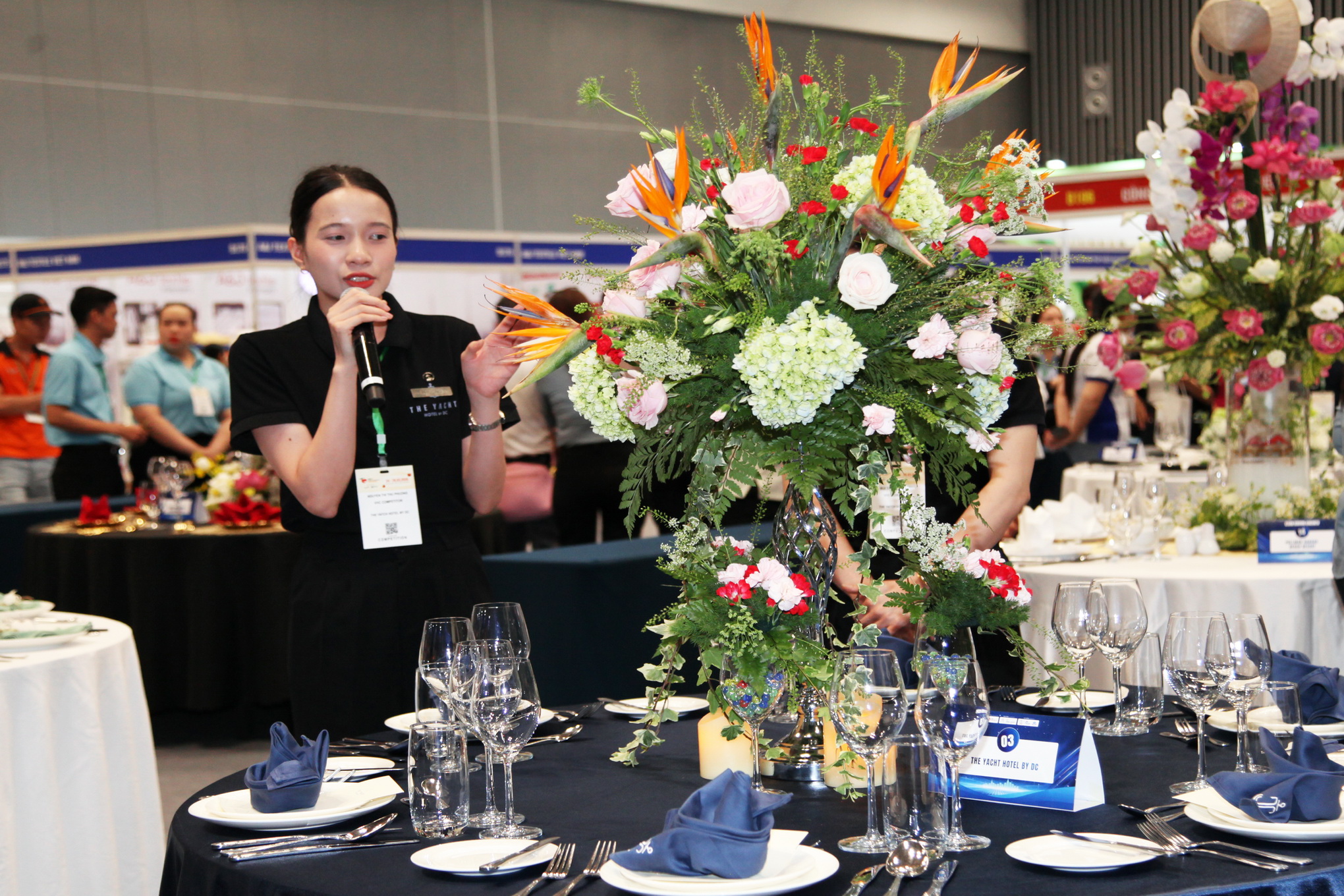 Ngay từ những phút đầu, không gian hội thi đã ngập tràn sắc hoa và sự tập trung cao độ của các đội thi. Mỗi đơn vị mang đến một ý tưởng riêng, thể hiện qua nghệ thuật cắm hoa và cách bài trí bàn tiệc, buồng phòng, tạo nên bức tranh đa sắc màu và giàu tính sáng tạo.